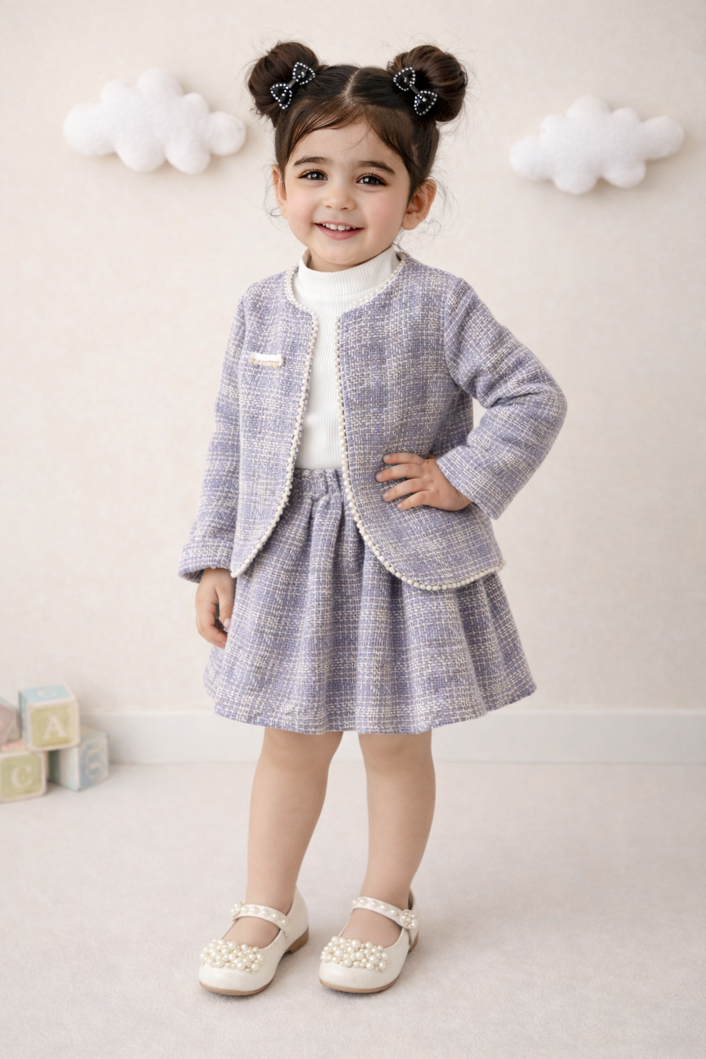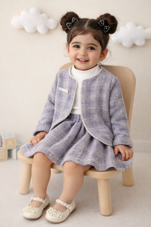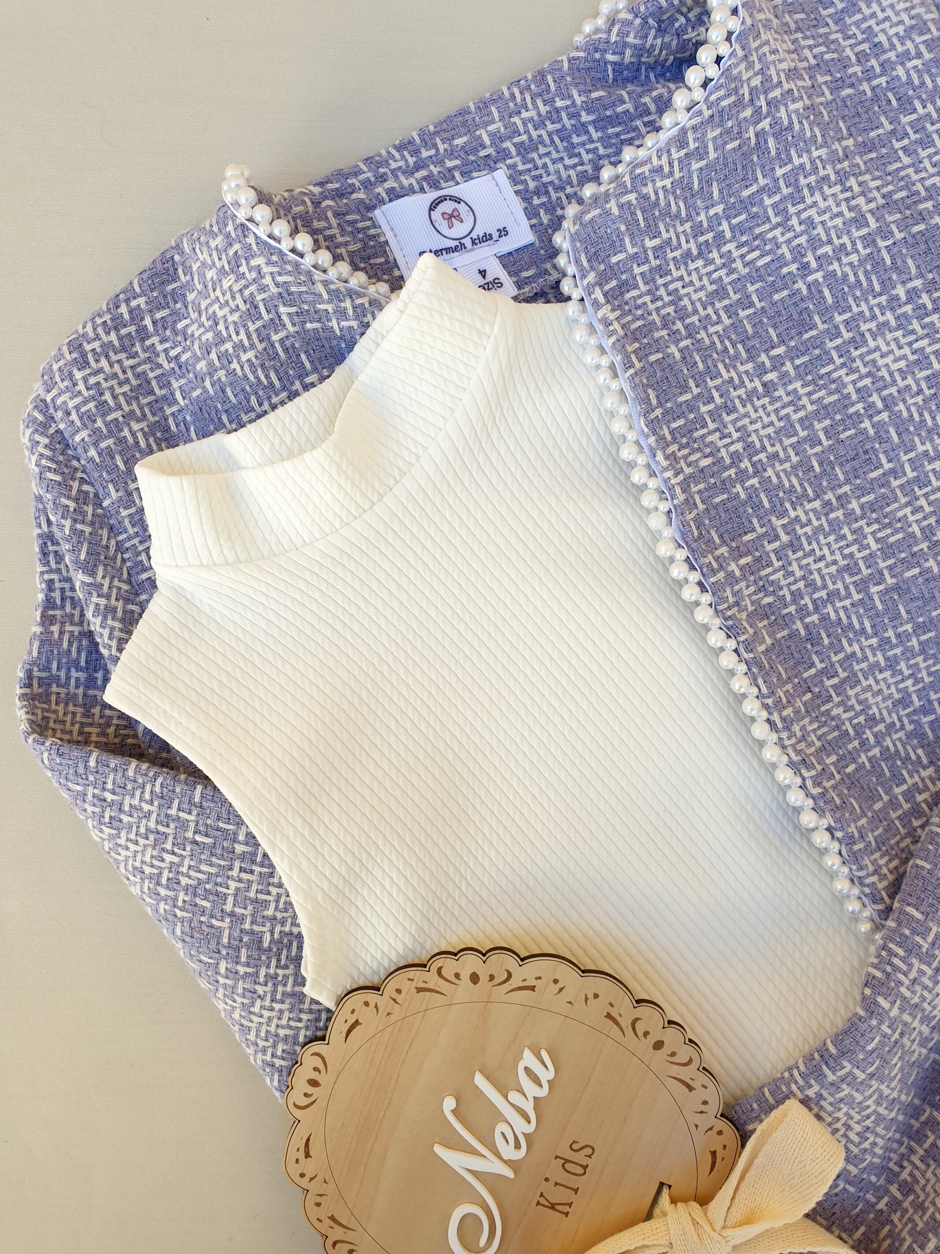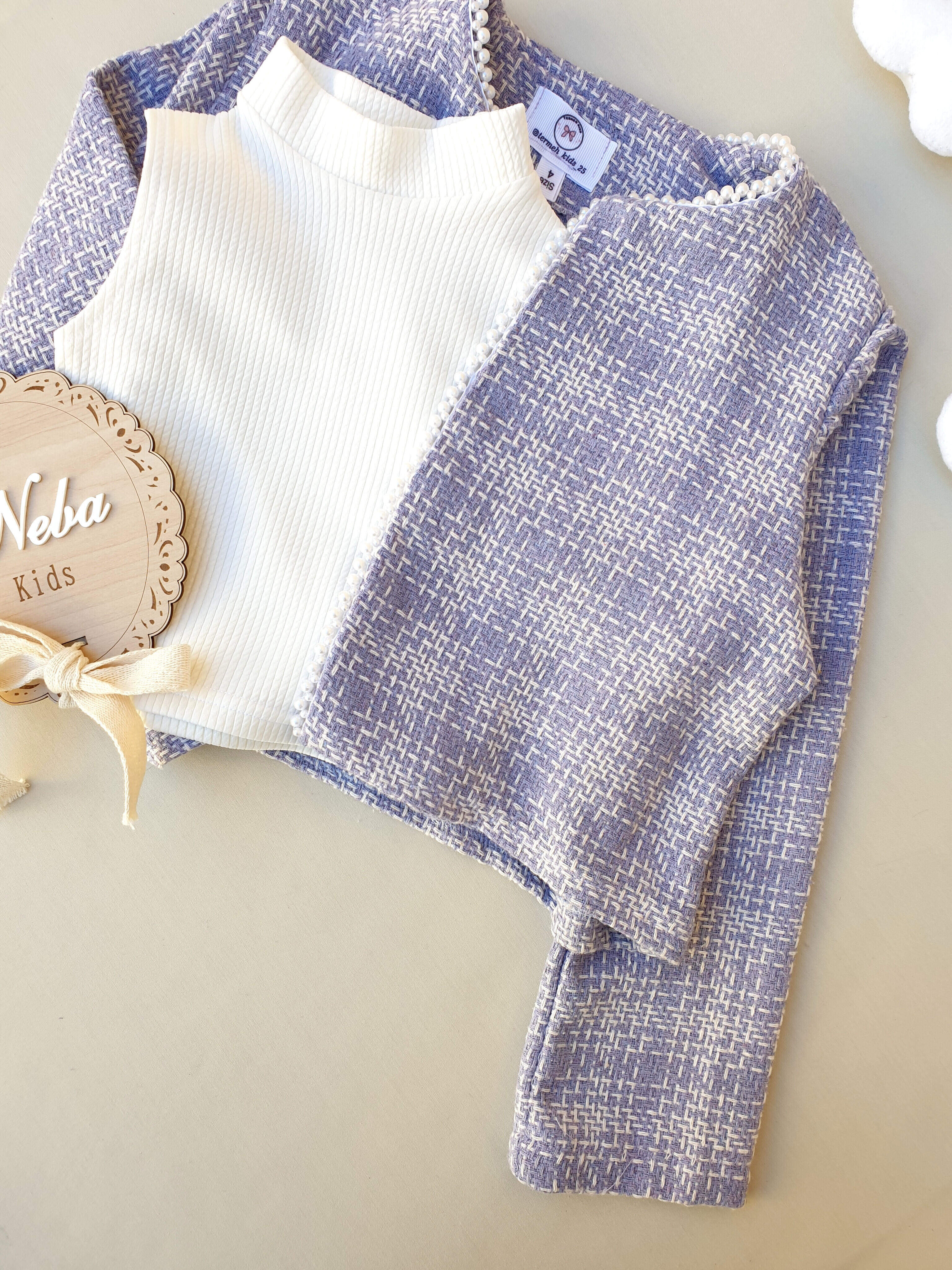 ست سه تیکه بچگانه دخترانه پارچه شنل مرواریدی مجلسی عید