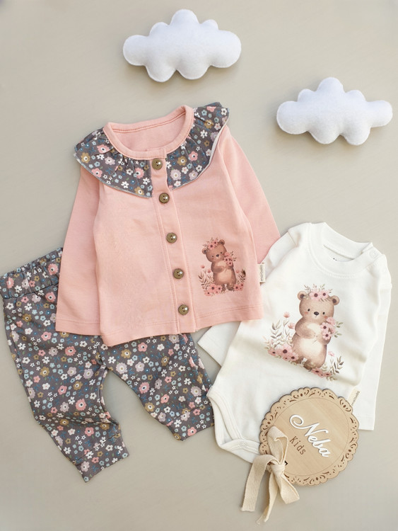 ست سه تیکه دخترانه راحتی ۱۰۰ درصد کتان پنبه وارداتی ترک