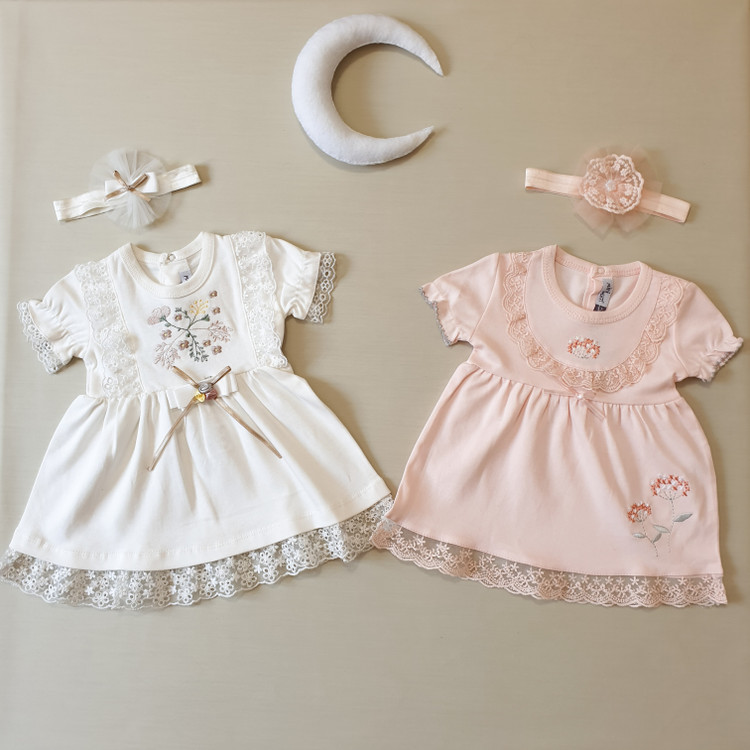 ست پیراهن و هدبند دخترانه وارداتی ترک🇹🇷