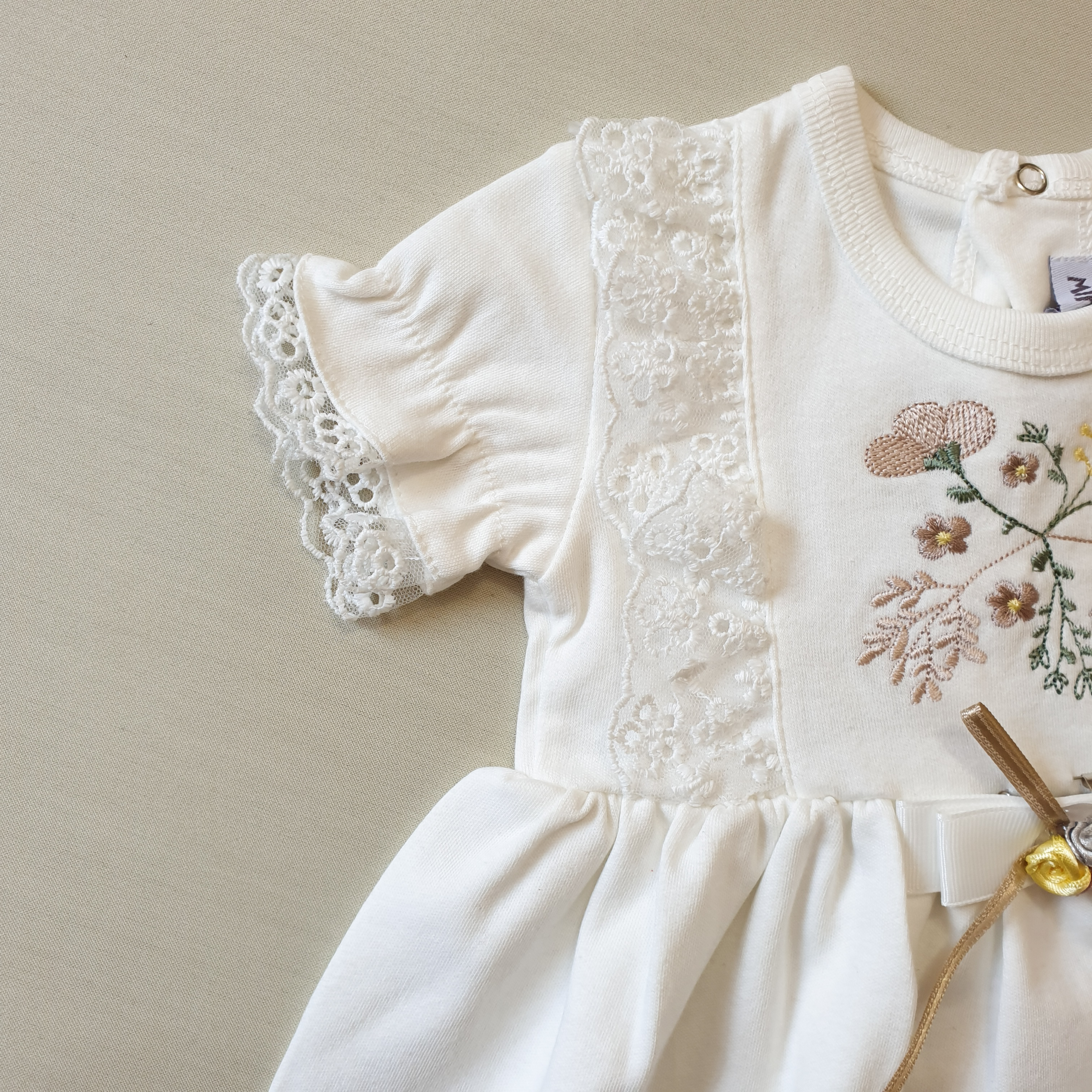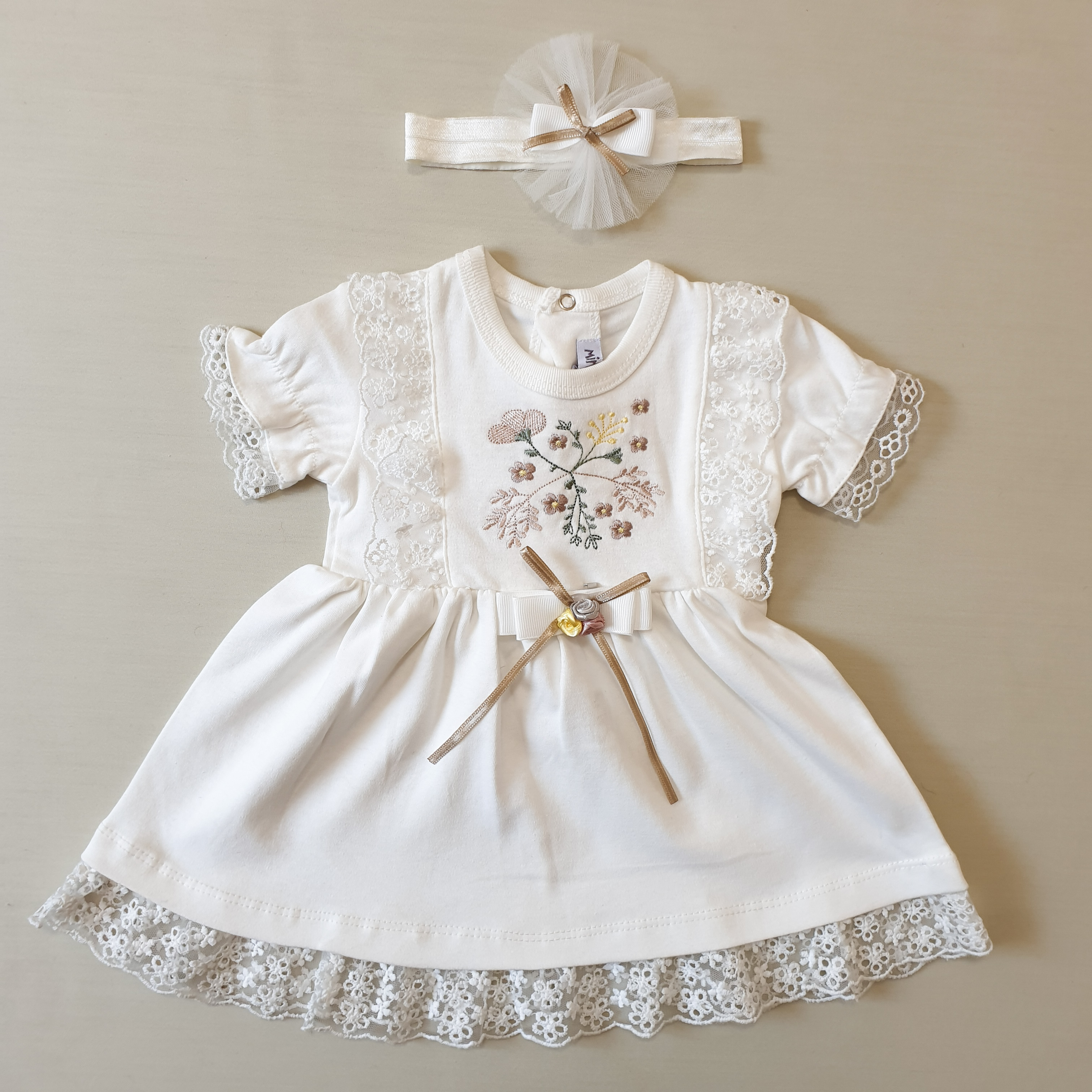 • پیراهن سفید: ۰ تا ۳ ماه👈🏻 پهنا: ۲۱/ قد: ۳۲
