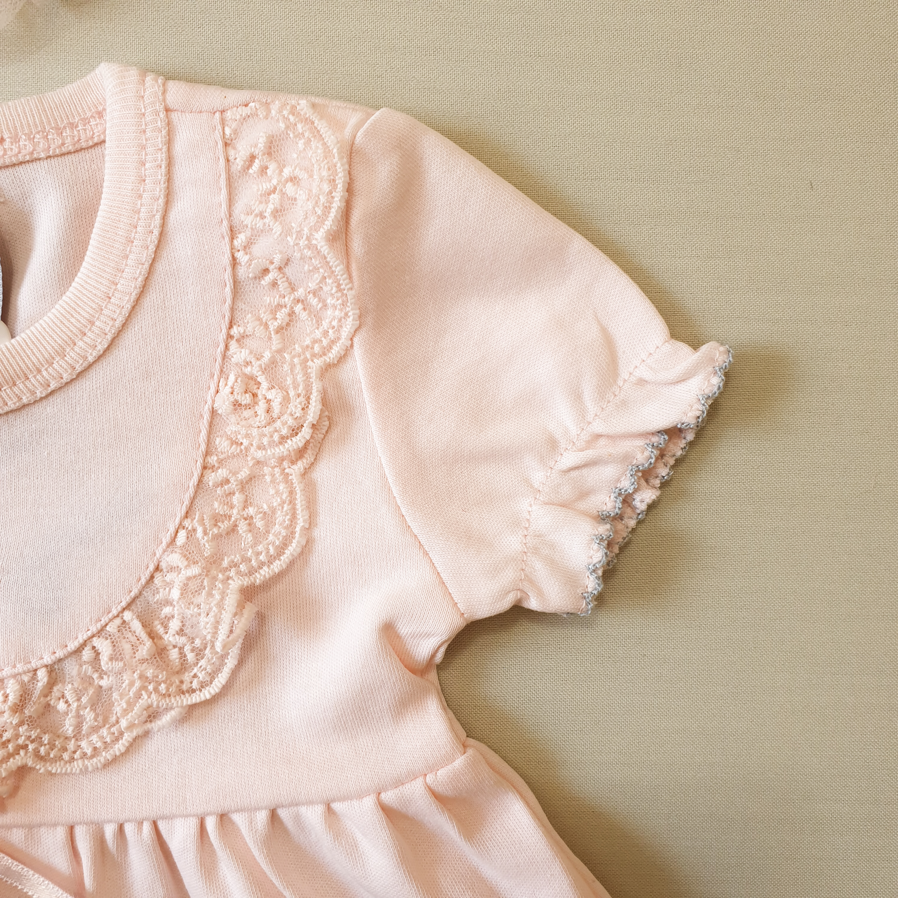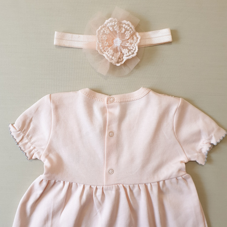 • پیراهن صورتی:۰ تا ۳ ماه👈🏻 پهنا: ۲۲/ قد: ۳۴