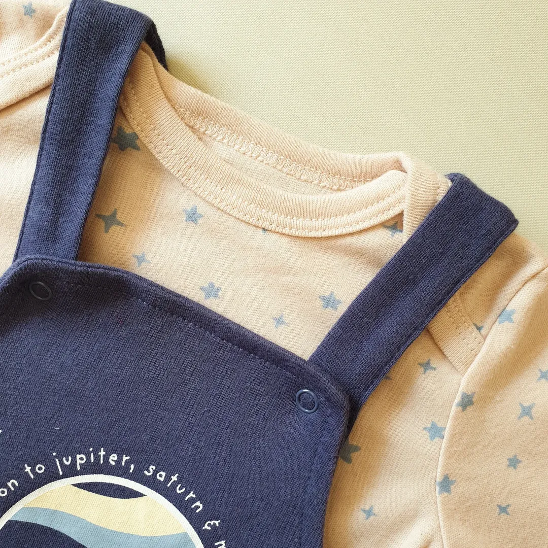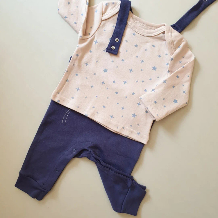 ست دوتیکه بلوز و بیلر دخترانه و پسرانه و بچگانه نخ پنبه طرح دار کهکشان