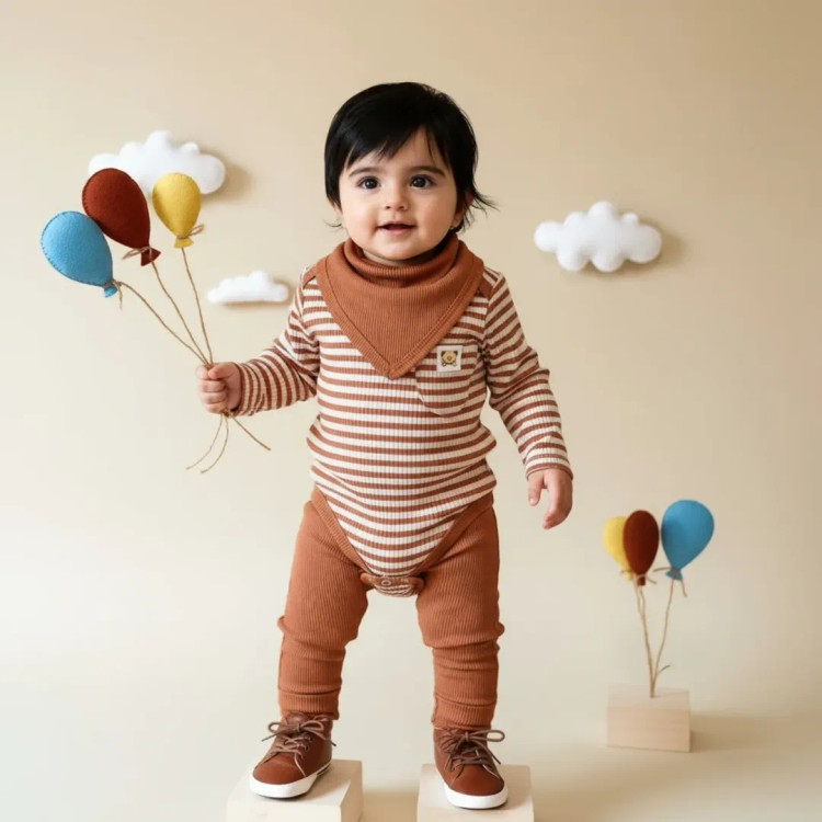 ست سه تیکه بچگانه، نوزادی و پسرانه ترک برند murat baby راه راه کبریتی