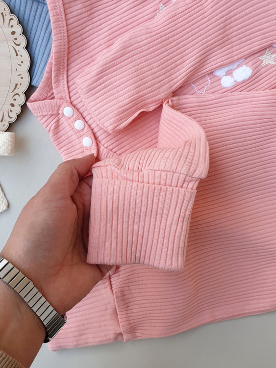 ست سه تیکه بادی و شلوار و کلاه نوزادی