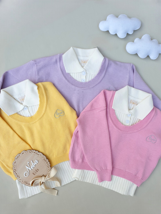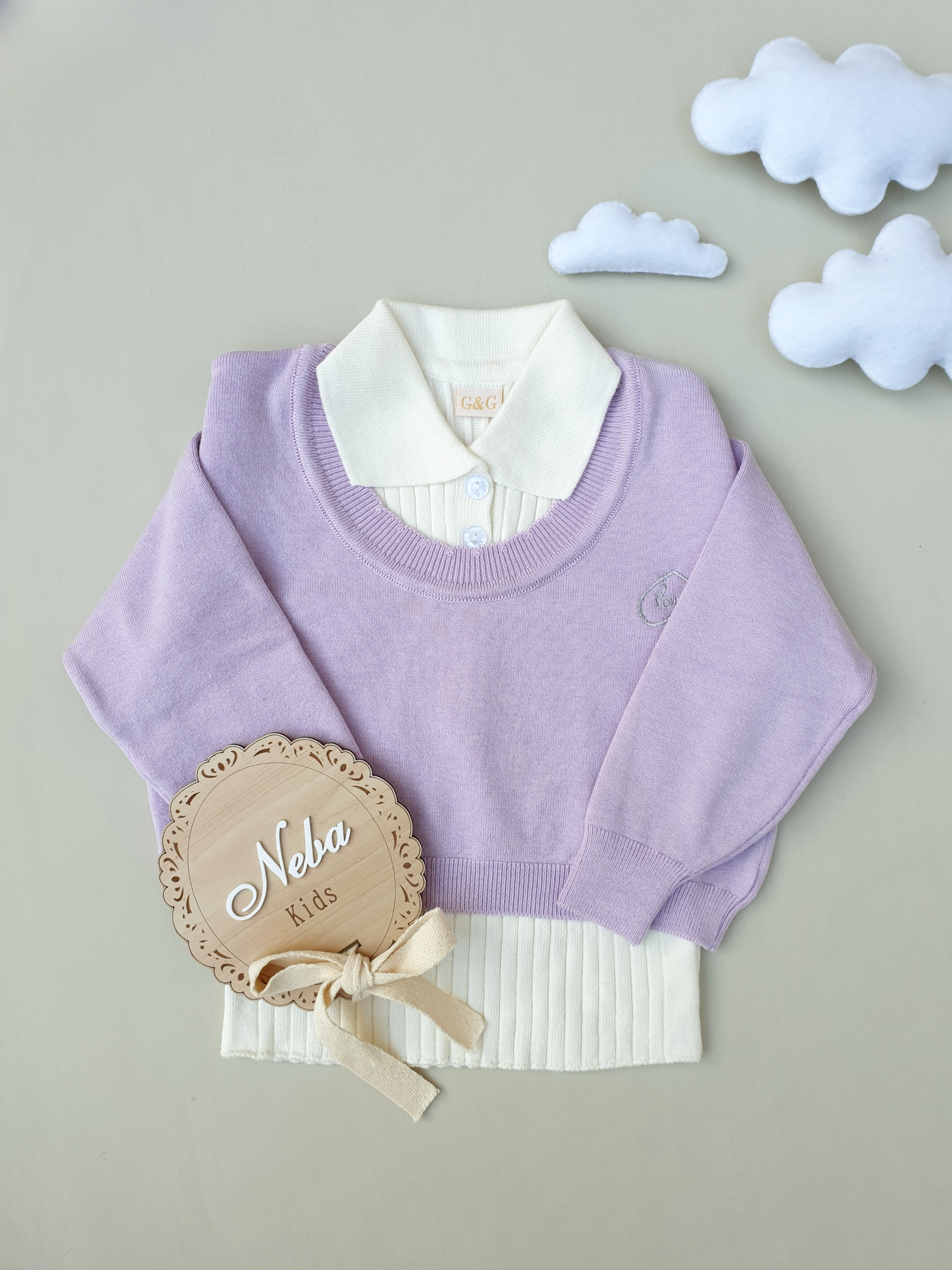 ست بافت دخترانه دوتیکه یقهدار🍭