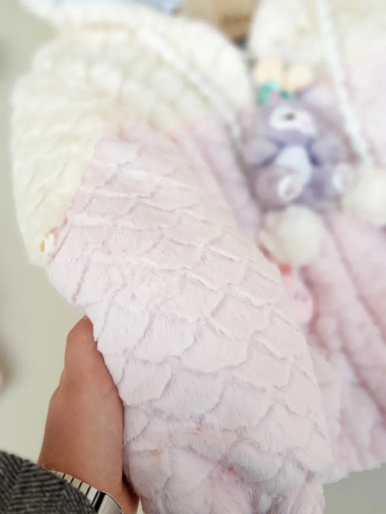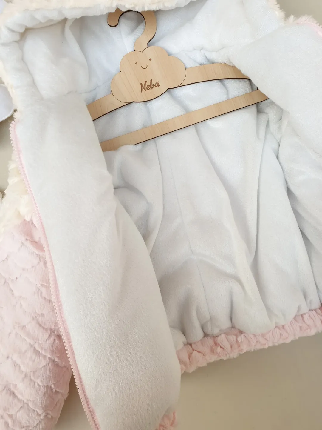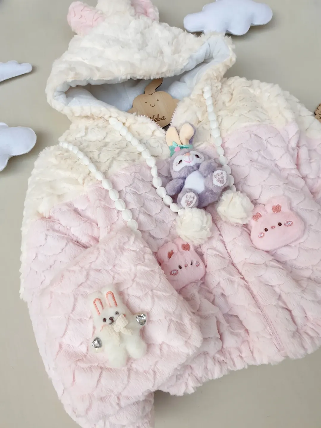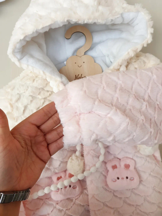 یک کت کلاهدارِ حسابی ضخیم با کیف بامزهی همراهش.